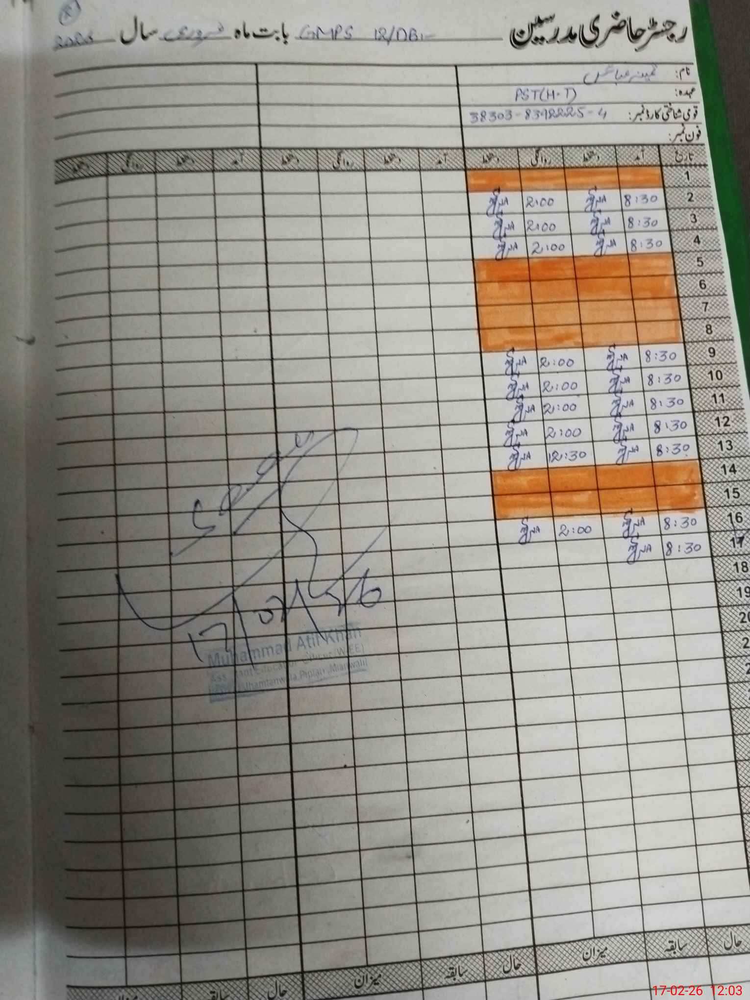 | Name: Sa**** Ab**** Designation: (School Headmaster's/Headmistress's) PST Phone/Cell Number: 03**** |