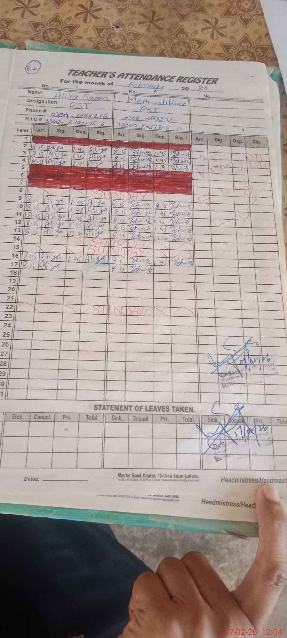 | Name: Al**** SA**** Designation: (School Headmaster's/Headmistress's) PST Phone/Cell Number: 03**** |