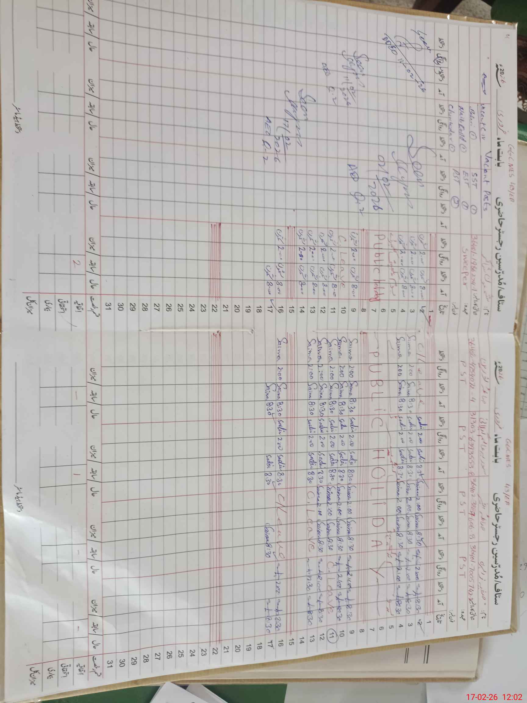 | CNIC | Full Name | Designation | R/C | Absence During Last Calender Month |