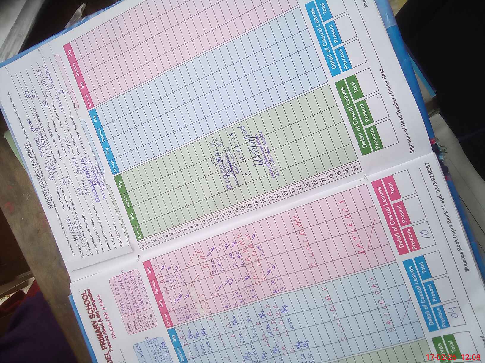 | Name: Na**** Si**** Designation: (School Headmaster's/Headmistress's) PST Phone/Cell Number: 03**** |