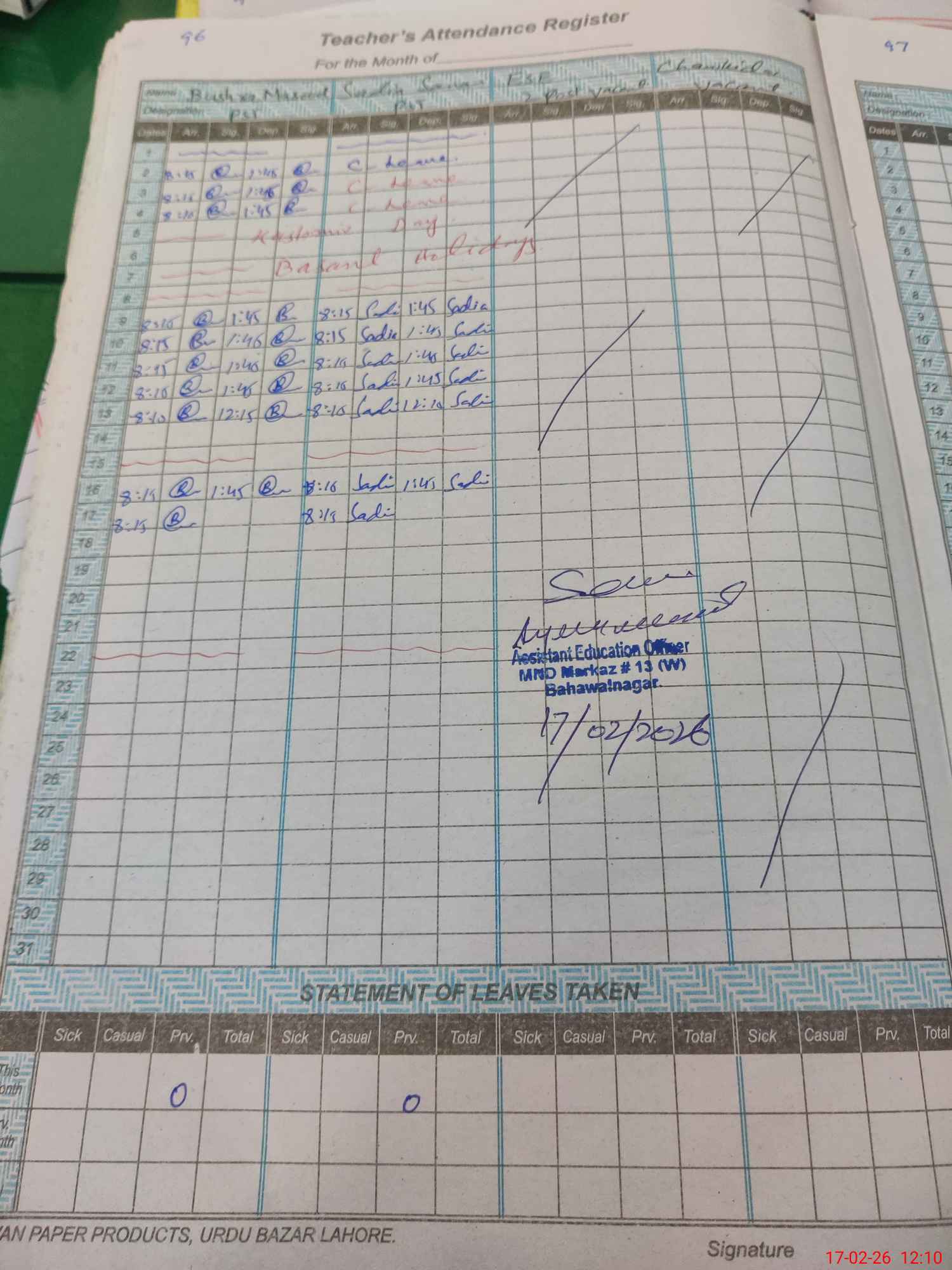 | 31**** | Ir**** Kh**** | PST Arts | Regular | 0 | 0 | 0 | 0 | 0 | 0 | 0 | 0 | 0 | Casual |