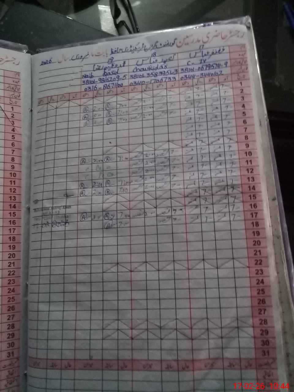 | CNIC | Full Name | Designation | R/C | Absence during last cal. month |