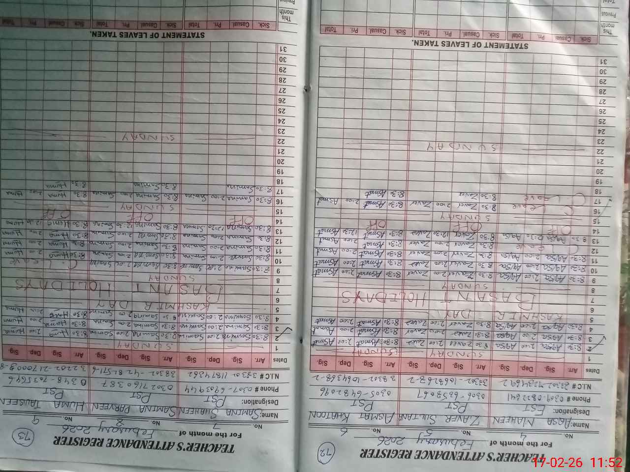 | Name: RU**** BI**** Designation: (School Headmaster's/Headmistress's) SSE ( ENGLISH ) Phone/Cell Number: 03**** |