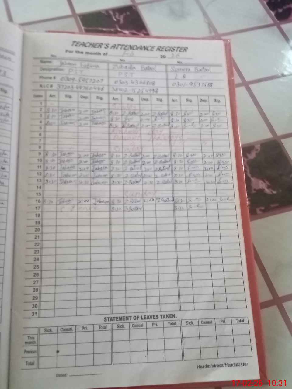 | Name: SA**** ZU**** Designation: (School Headmaster's/Headmistress's) S.S.T.(Arts) Phone/Cell Number: 03**** |