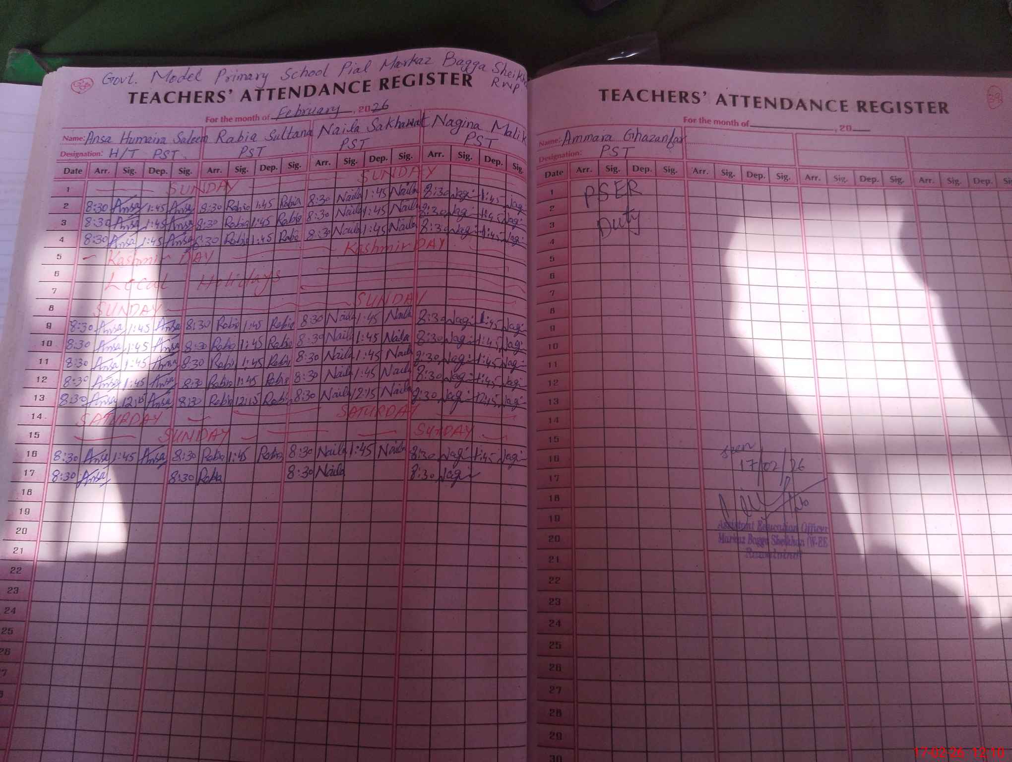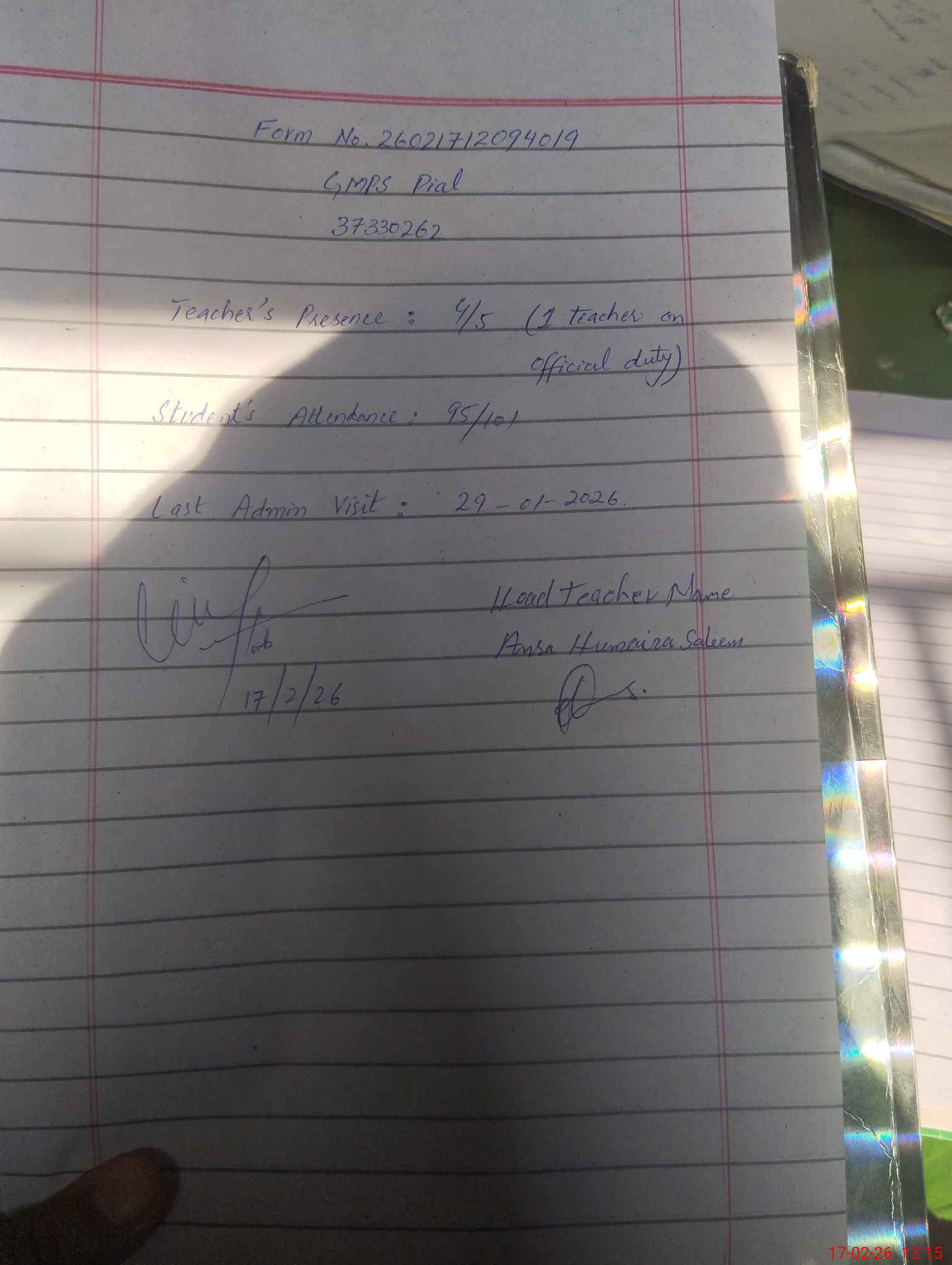 | Name: An**** Hu**** Sa**** Designation: (School Headmaster's/Headmistress's) PST Phone/Cell Number: 03**** |