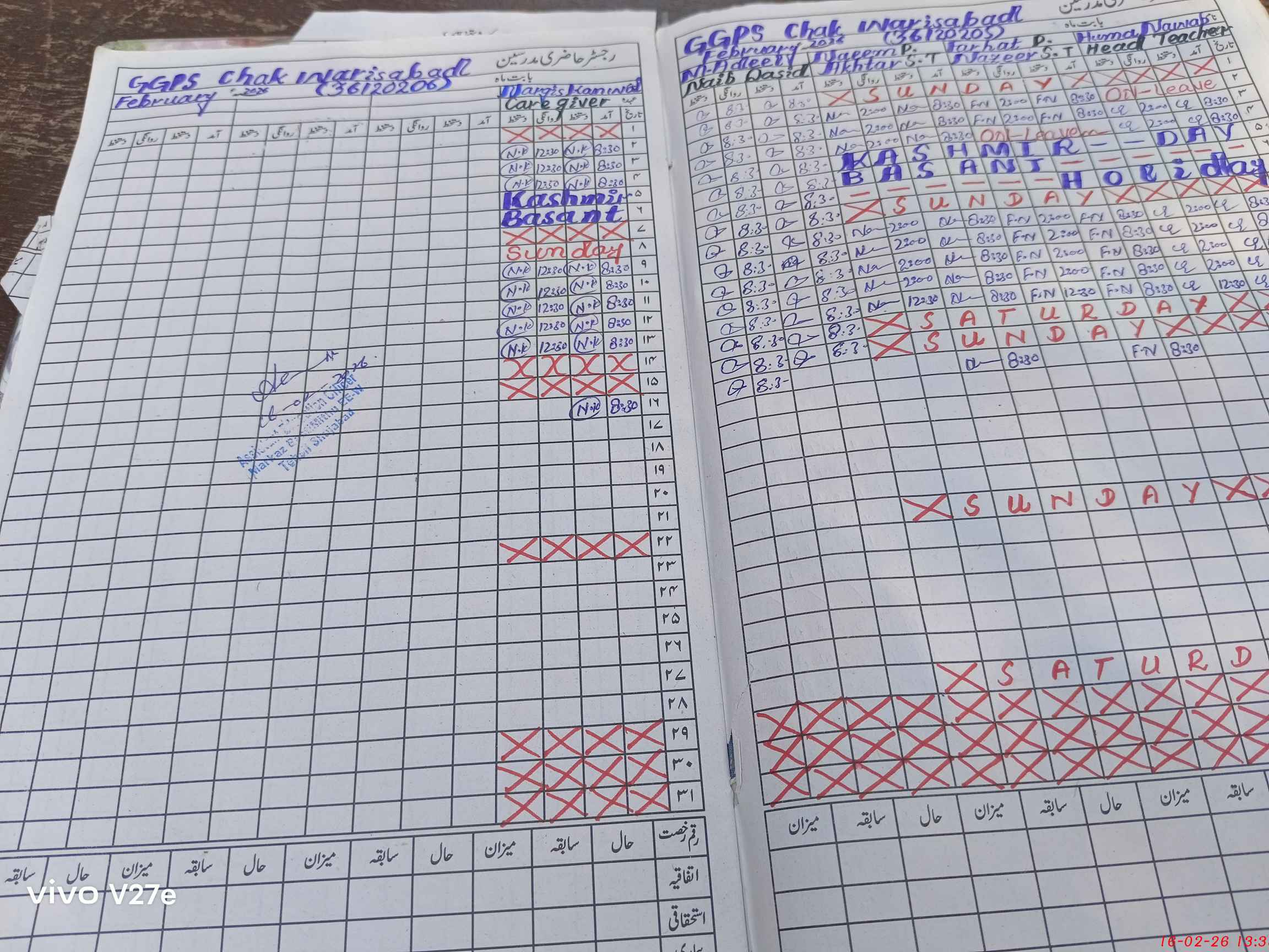 | Leave | Duty | Absent | Maternity | Medical | Ex- Pak |