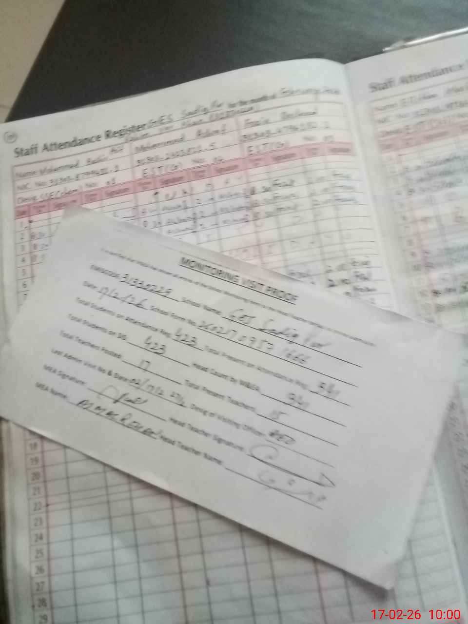 | Attendance Register | Head Teacher | MEA with School | Visit Proof |