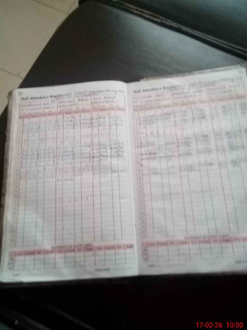 | Leave | Duty | Absent | Maternity | Medical | Ex- Pak |