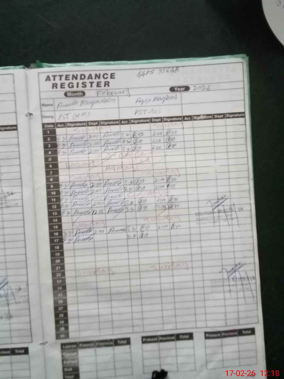 | Name: AN**** MU**** Designation: (School Headmaster's/Headmistress's) PST Phone/Cell Number: 03**** |
