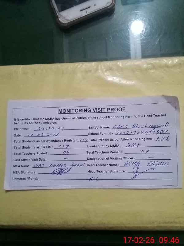 | EMIS Code: 34110147 | Name of School: GGHS BAKHRAY WALI KALAN | |||