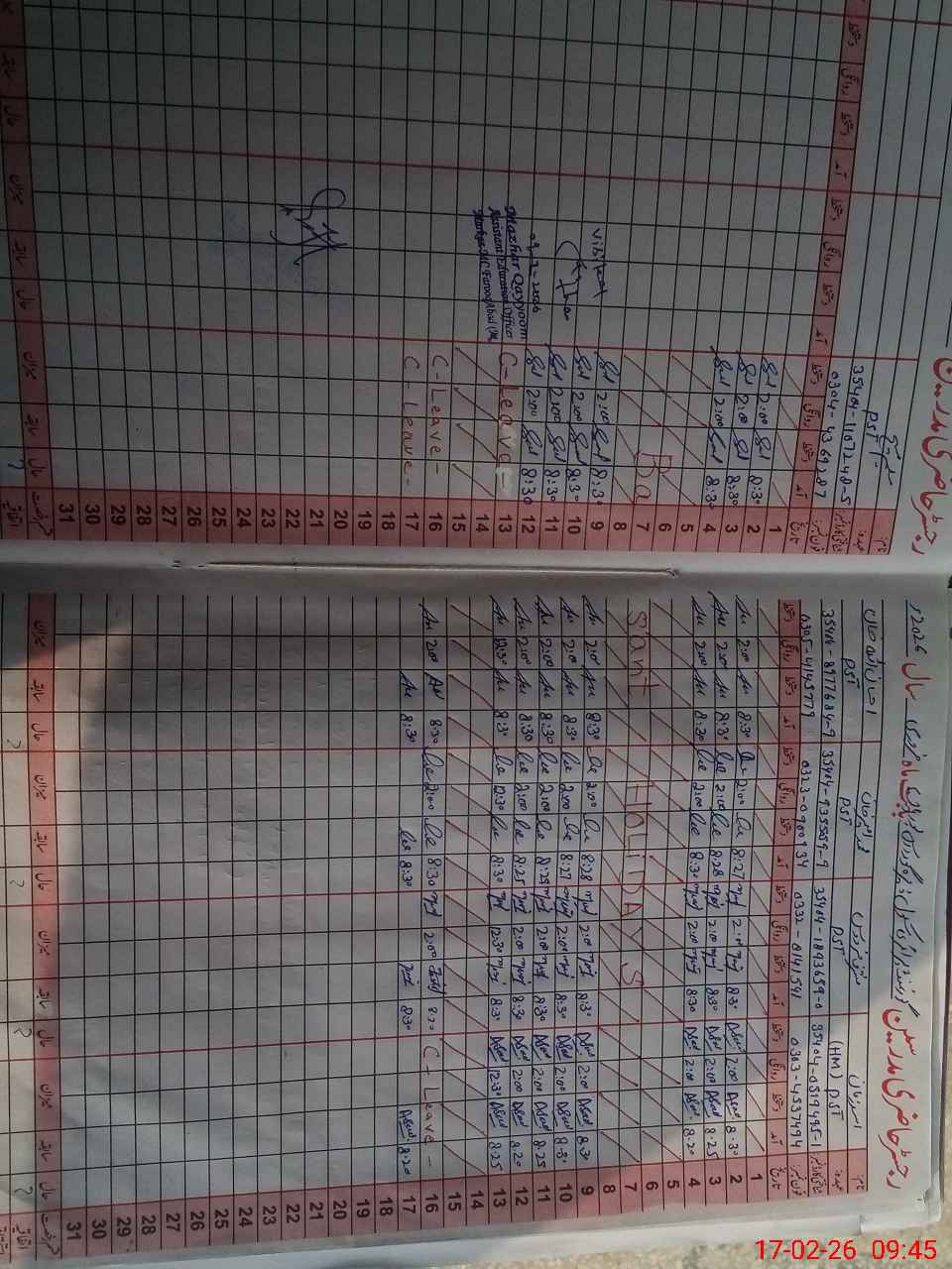 | CNIC | Full Name | Designation | R/C | Absence During Last Calender Month |
