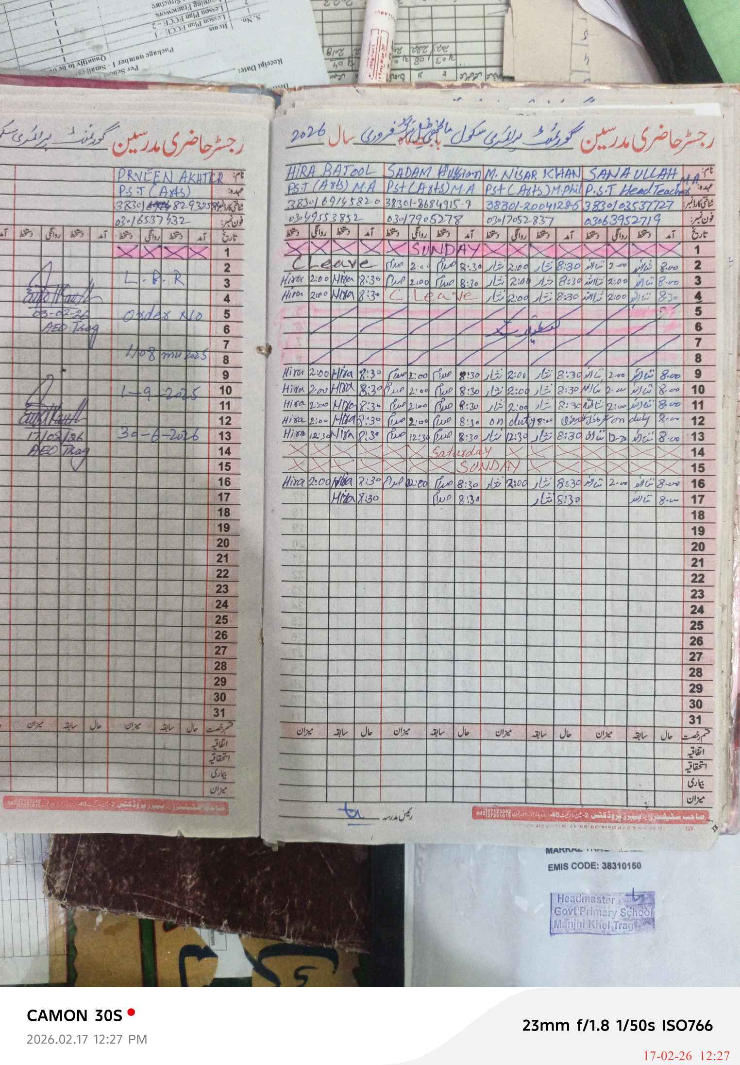 | Attendance Register | Head Teacher | MEA with School | Visit Proof |