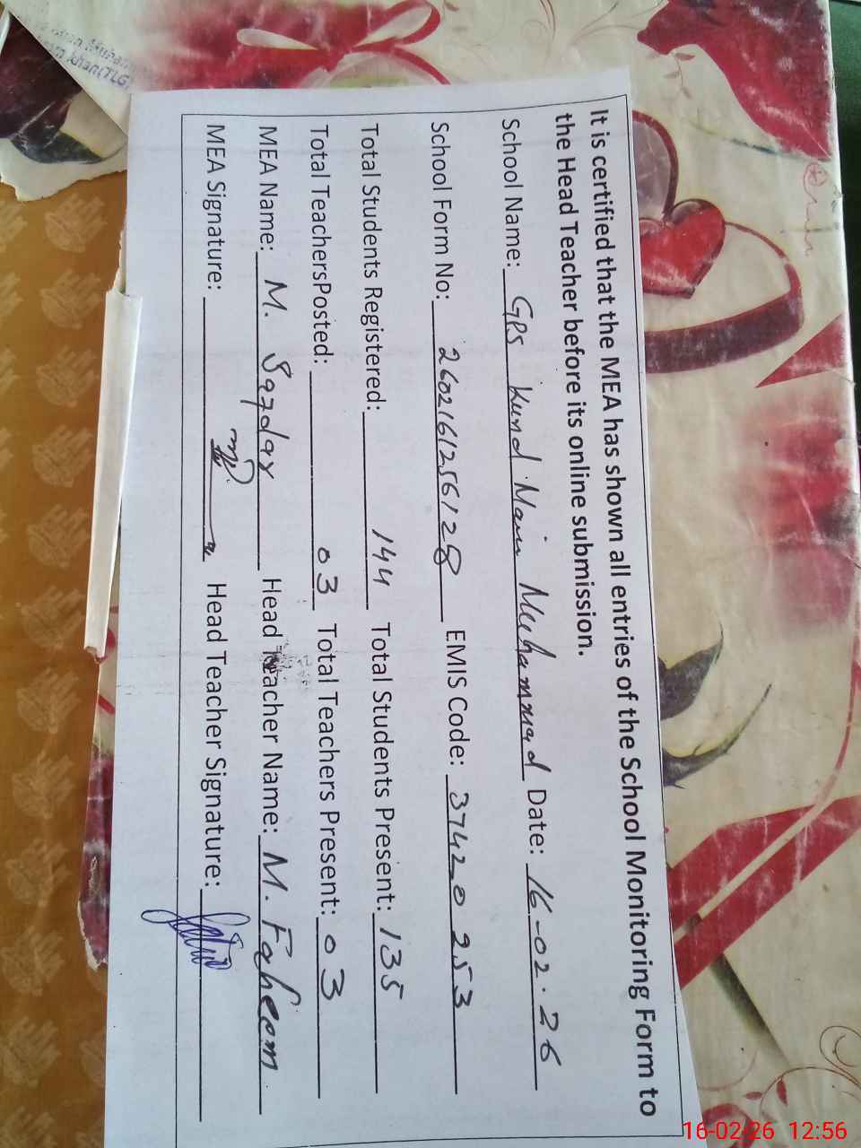 | EMIS Code: 37420253 | Name of School: GPS KUND MIAN MUHAMMAD | |||