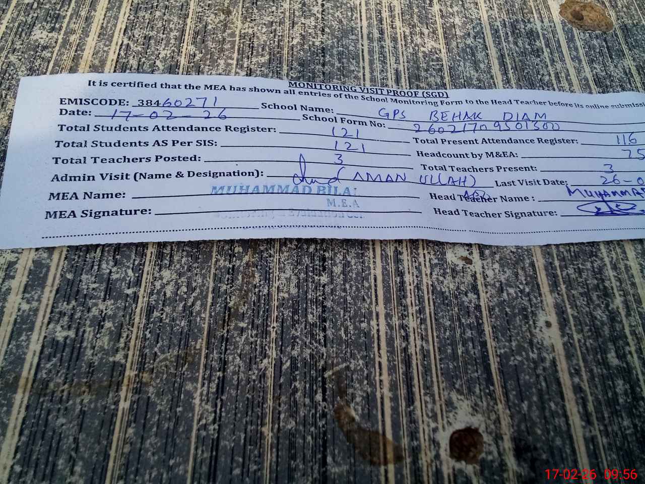 | EMIS Code: 38460271 | Name of School: GPS BEHAK DIAM | |||