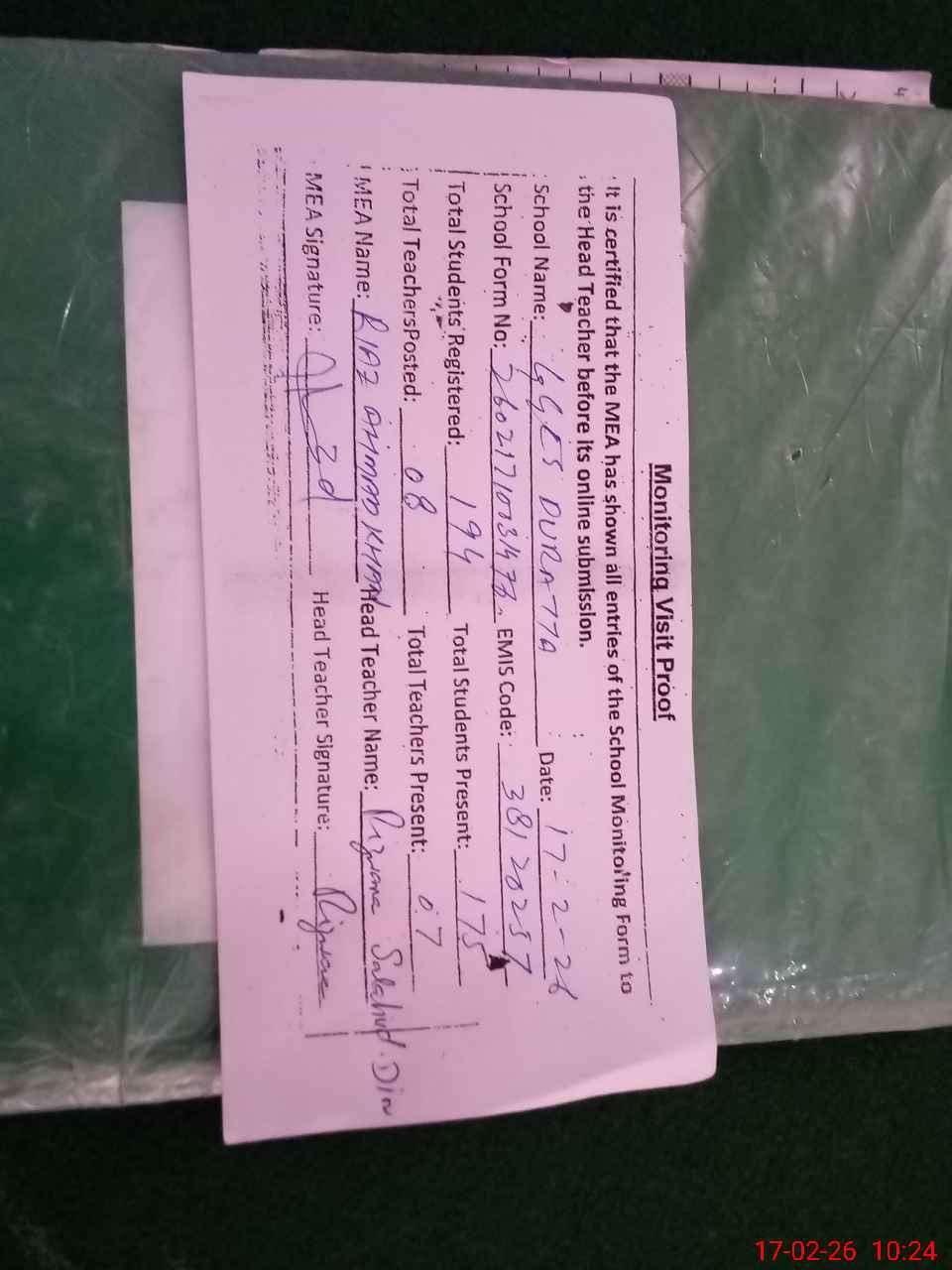 | EMIS Code: 38120257 | Name of School: GGES DURATTA | |||