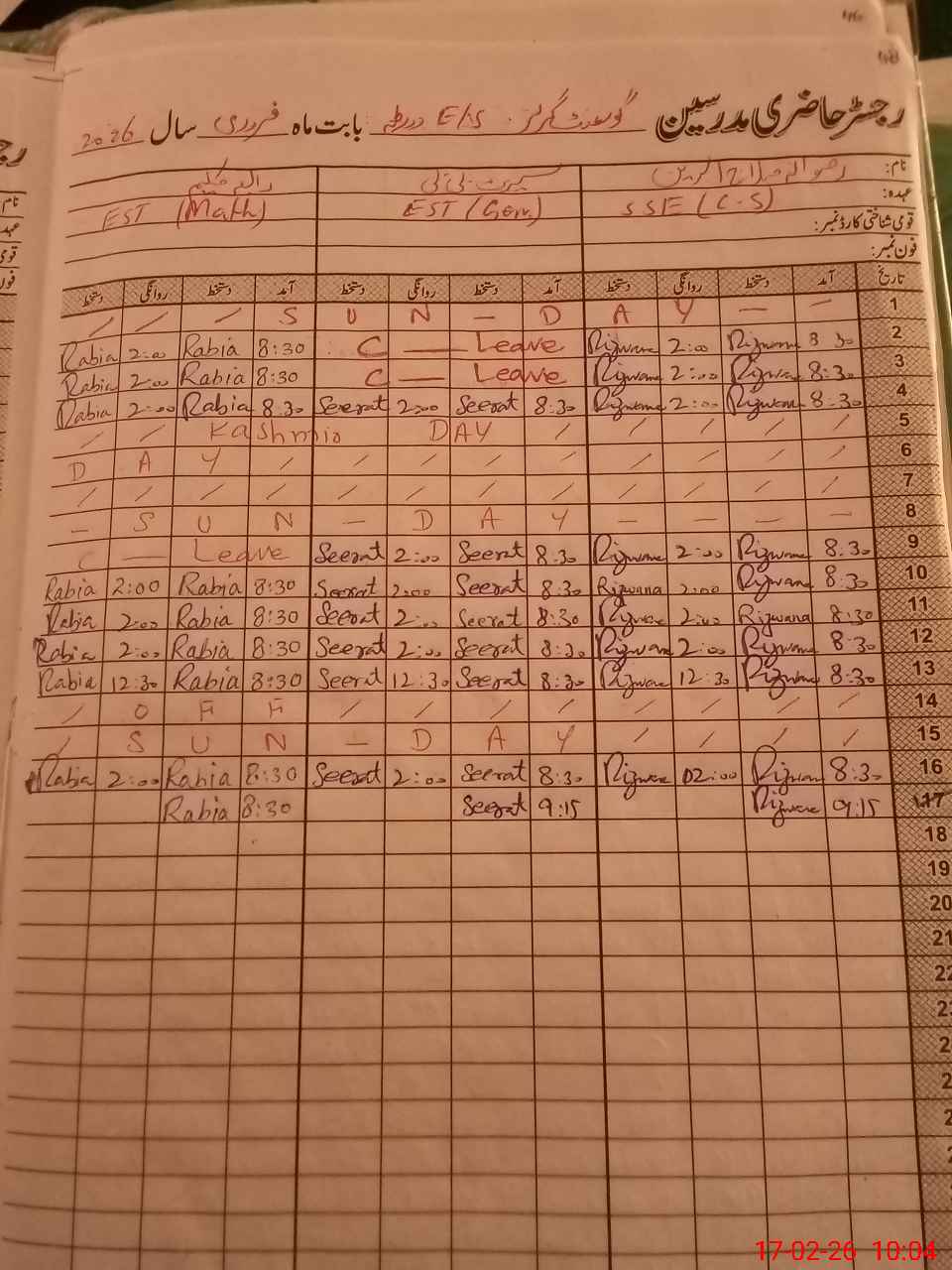 | 37**** | Ir**** Sh**** | PST Science/Maths | Regular | 0 | 0 | 0 | 0 | 0 | 0 | 0 | 0 | 0 | Casual |