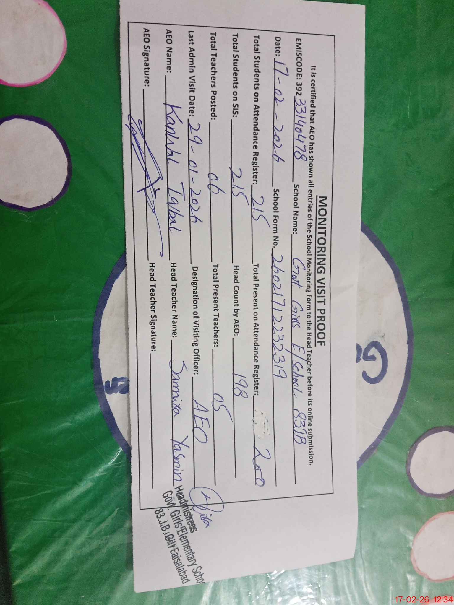 | EMIS Code: 33140478 | Name of School: GGES CHAK NO 83 JB | |||