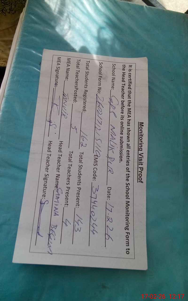 | EMIS Code: 37440244 | Name of School: GPS MALIK PUR | |||