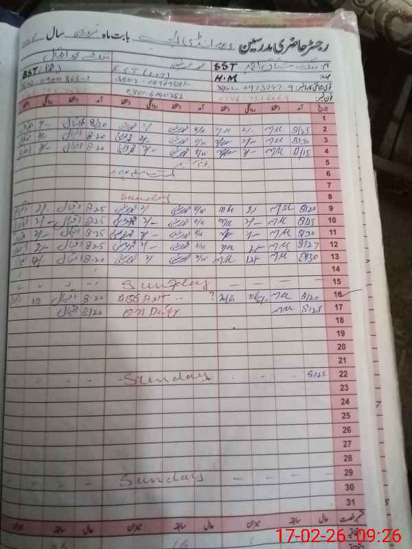 | Name: MU**** UM**** KH**** Designation: (School Headmaster's/Headmistress's) HEADMASTER SST Phone/Cell Number: 03**** |