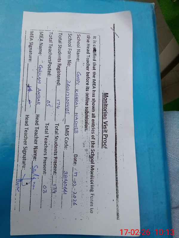 | EMIS Code: 38140661 | Name of School: GMPS KHARAL NASHEB | |||