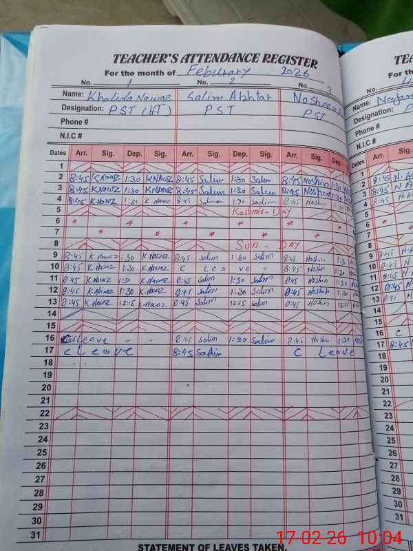 | 38**** | Kh**** Na**** | PST Arts | Regular | 0 | 0 | 0 | 0 | 0 | 0 | 0 | 0 | 0 | Absent (Un-Authorized) |