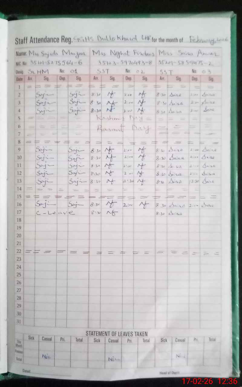 | EMIS Code: 35210184 | Name of School: GGHS DULLO KHURD | |||