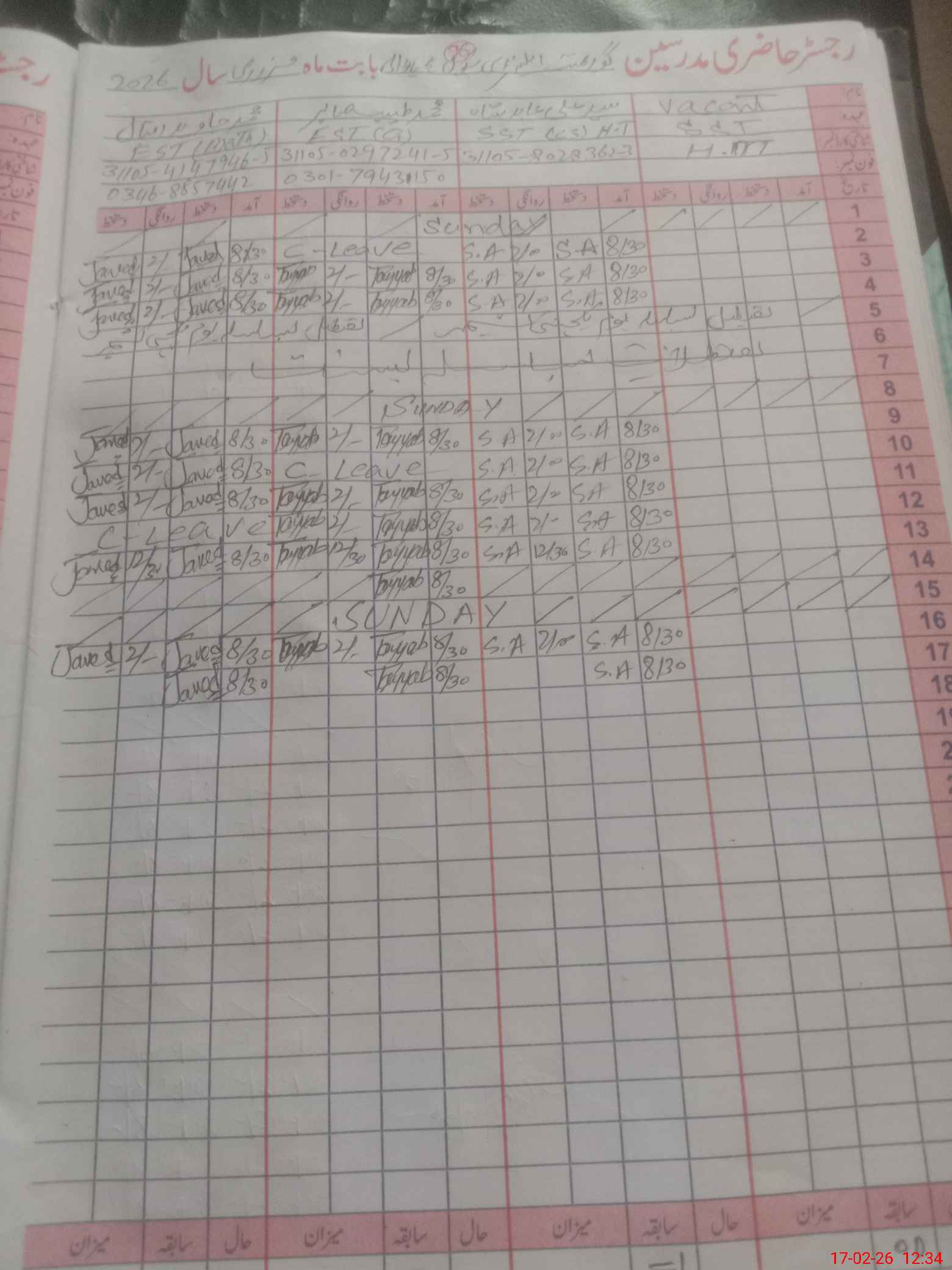 | Name: Sy**** Al**** Ab**** Sh**** Designation: (School Headmaster's/Headmistress's) Sst Phone/Cell Number: 03**** |