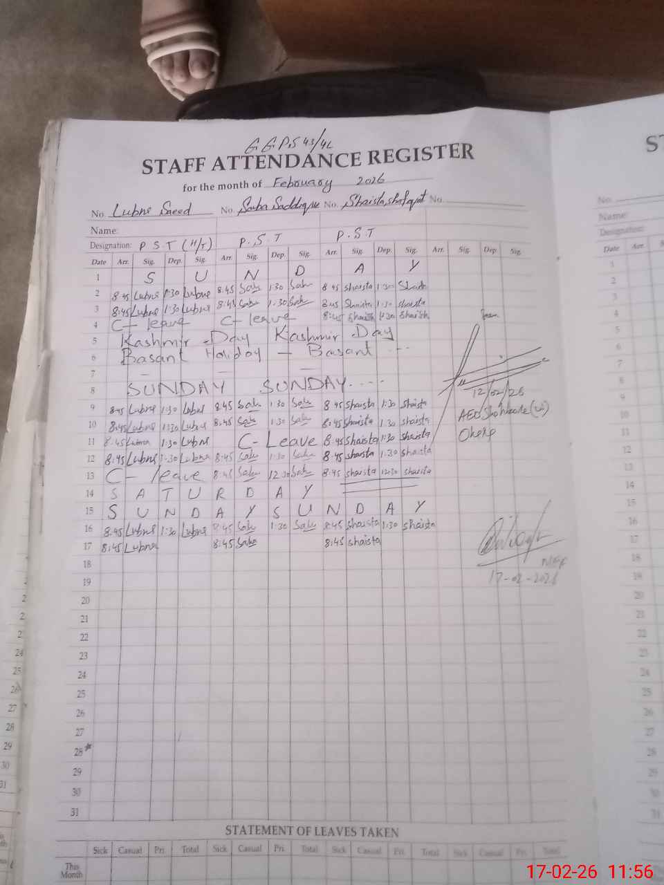 | Name: Lu**** Sa**** Designation: (School Headmaster's/Headmistress's) PST Phone/Cell Number: 03**** |