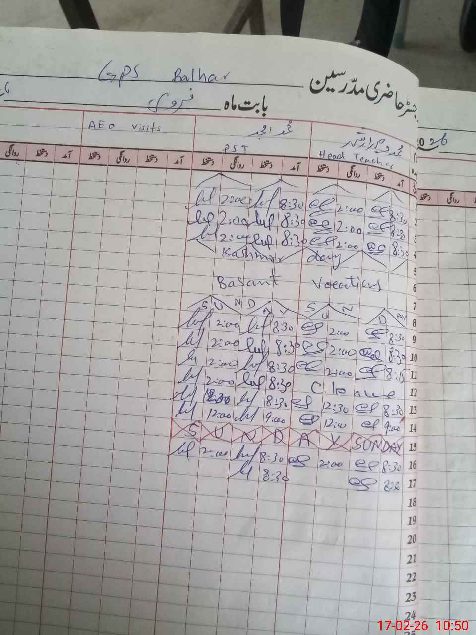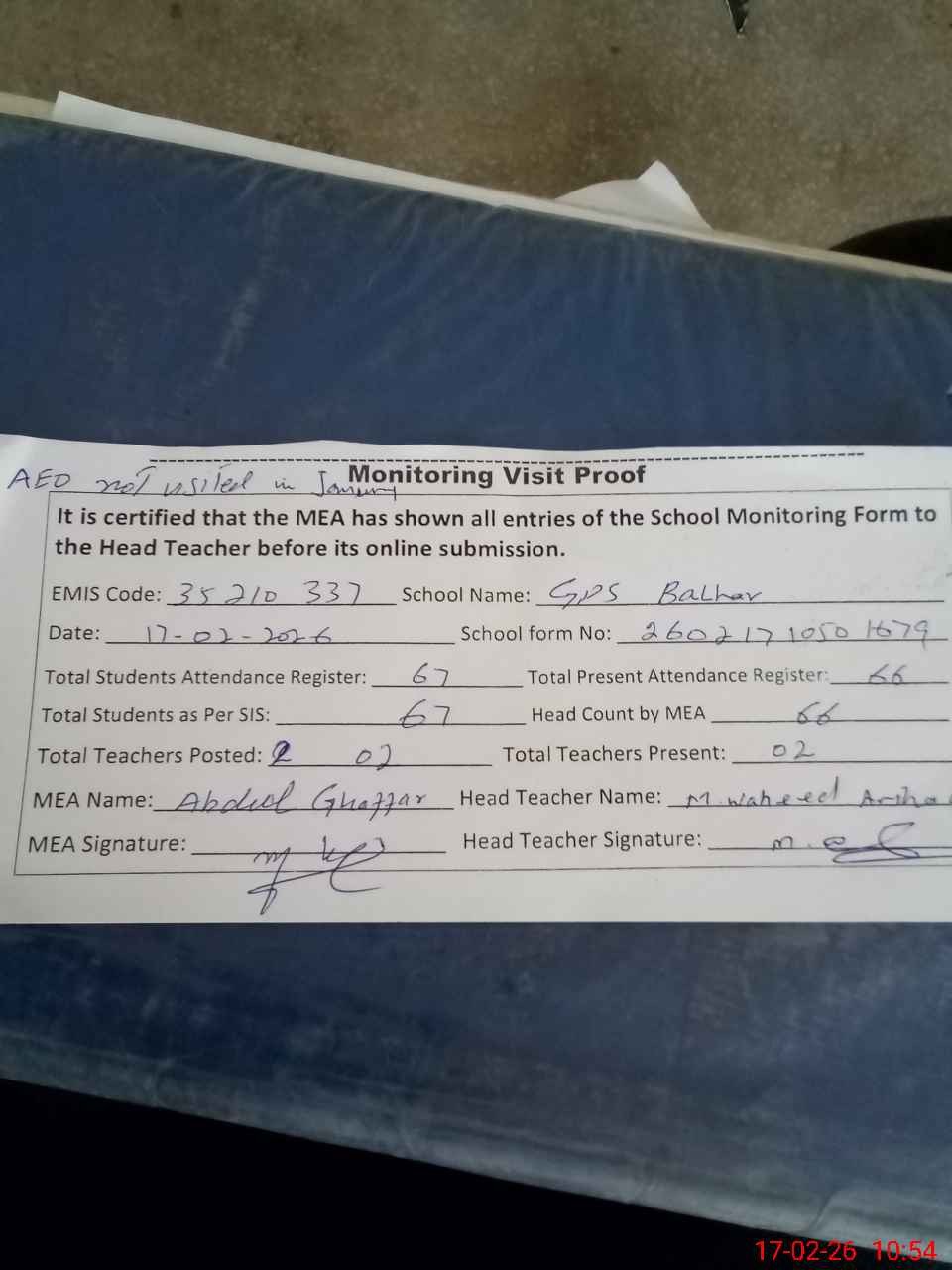 | EMIS Code: 35210337 | Name of School: GPS BALHAR TEHSIL MODEL TOWN | |||