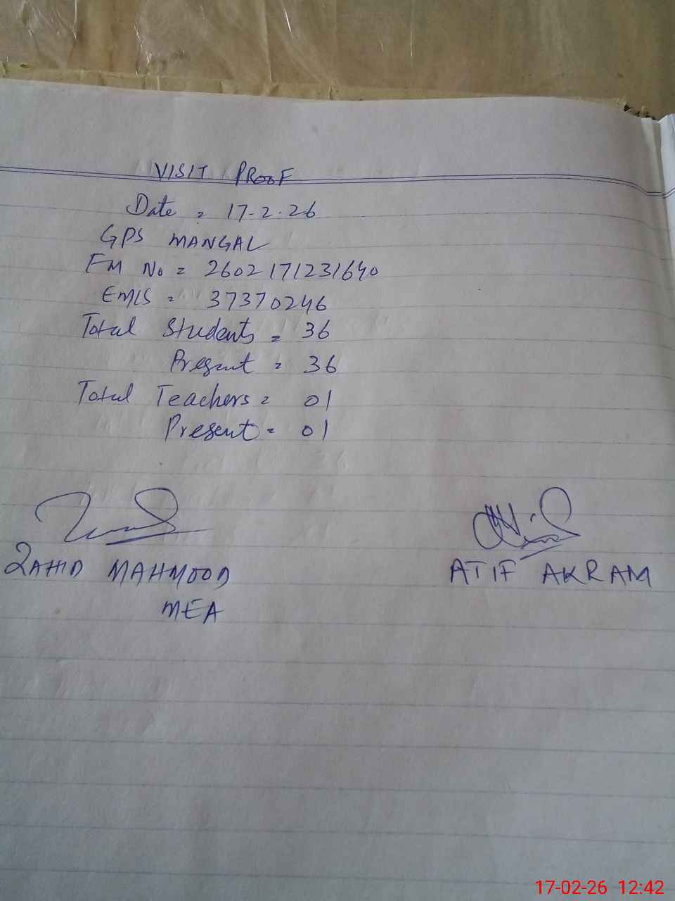 | EMIS Code: 37370246 | Name of School: GPS MANGAL | |||