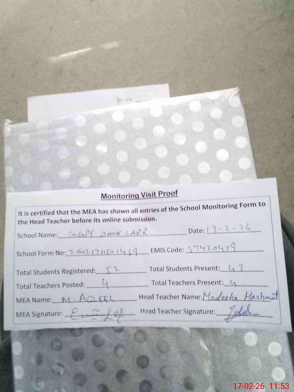 | EMIS Code: 37420419 | Name of School: GGPS DHOK LARR | |||