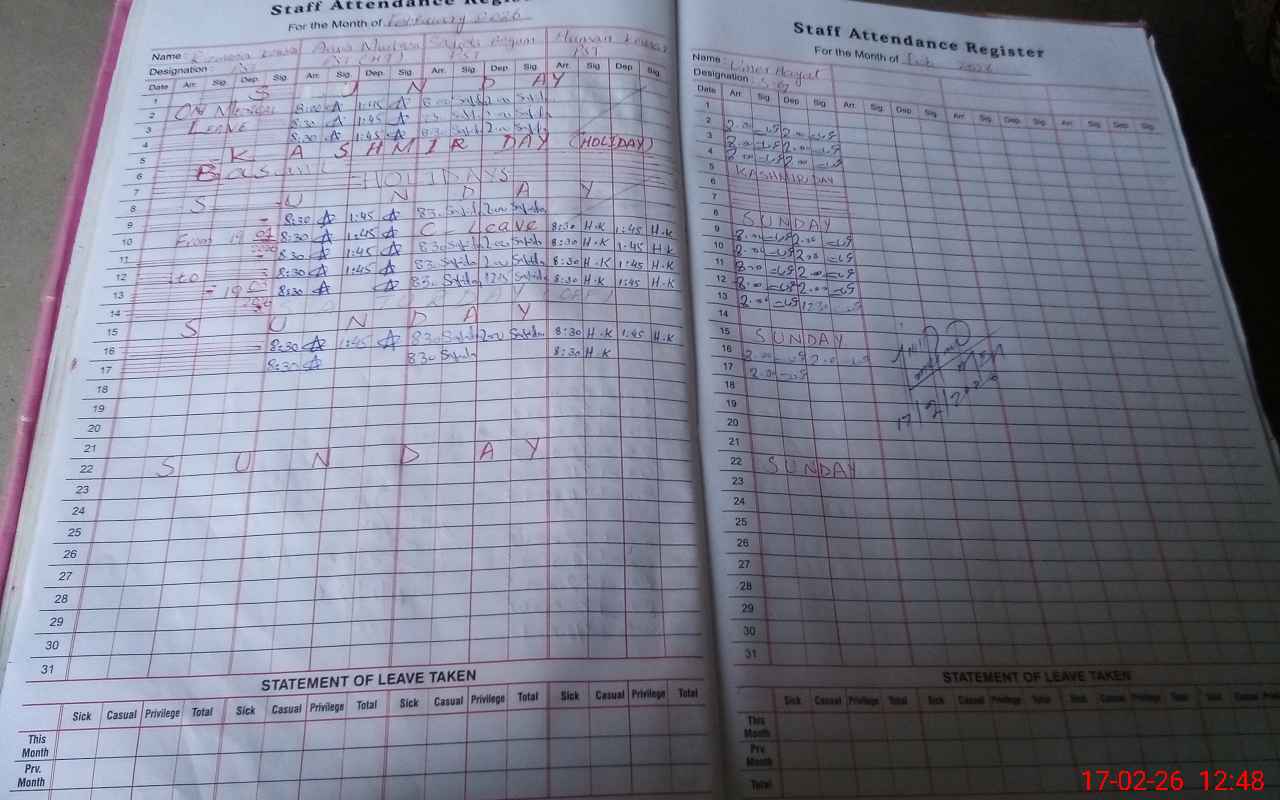 | CNIC | Full Name | Designation | R/C | Absence During Last Calender Month |