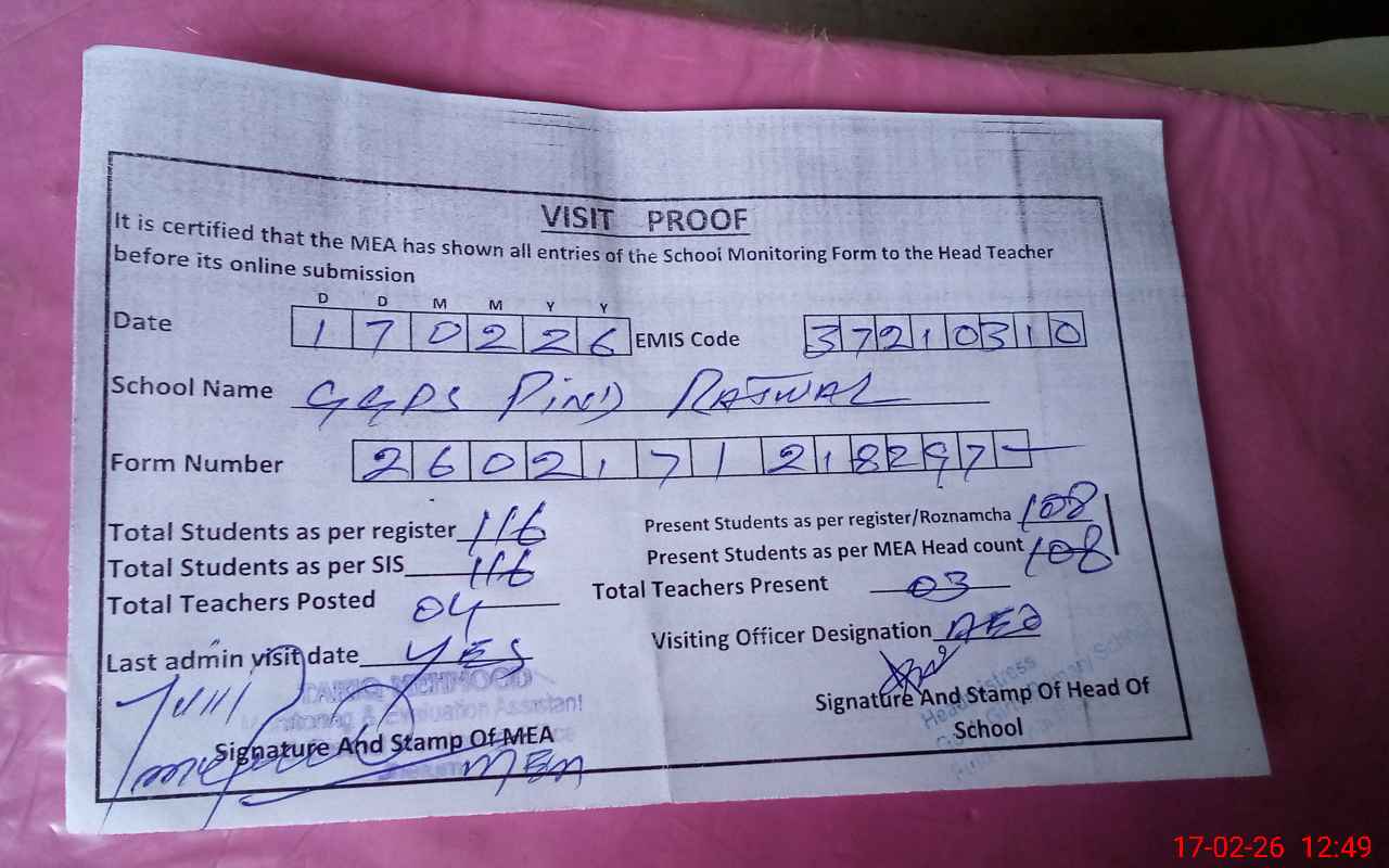 | Attendance Register | Head Teacher | MEA with School | Visit Proof |