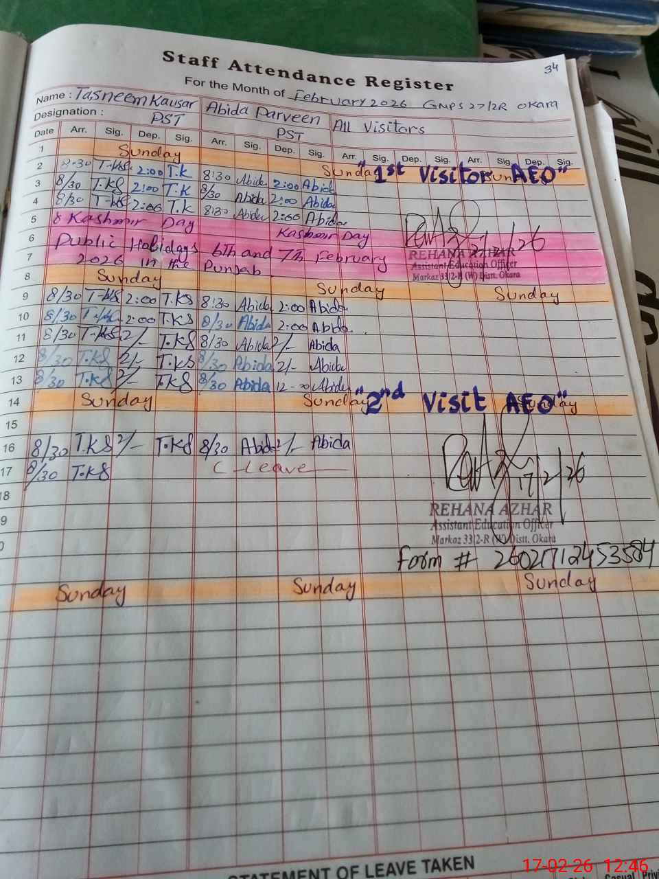 | 35**** | Ab**** Pa**** | PST Arts | Regular | 0 | 0 | 0 | 0 | 0 | 0 | 0 | 0 | 0 | Casual |