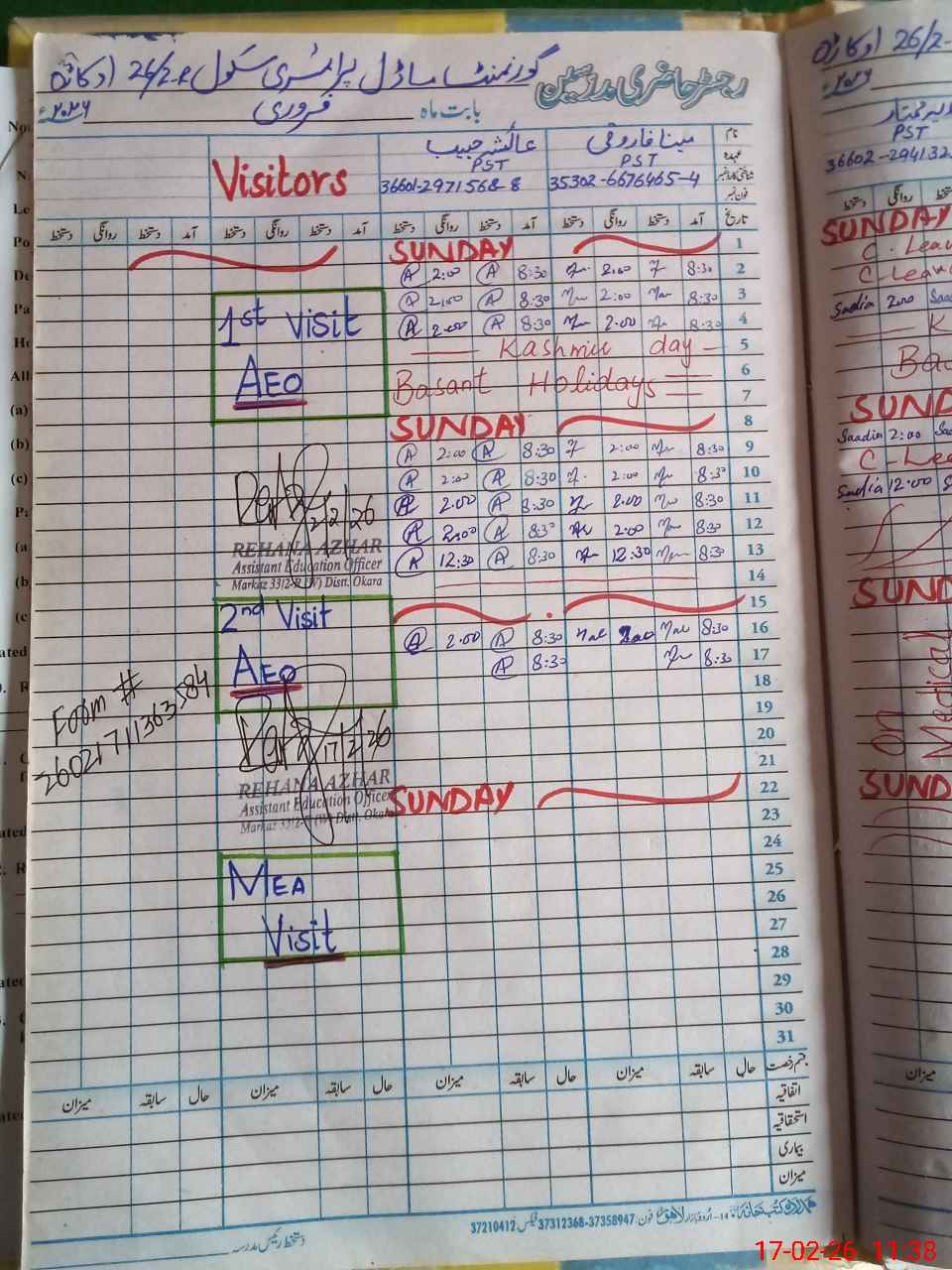 | Name of AEO: | AEO Contact No.: | MEA Phone#: 03**** | ||