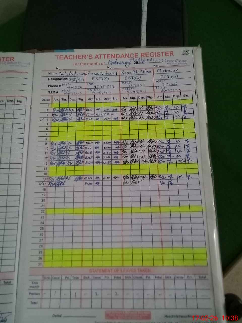 | EMIS Code: 36420172 | Name of School: GES 41/10-R QADEEM, KHANEWAL | |||