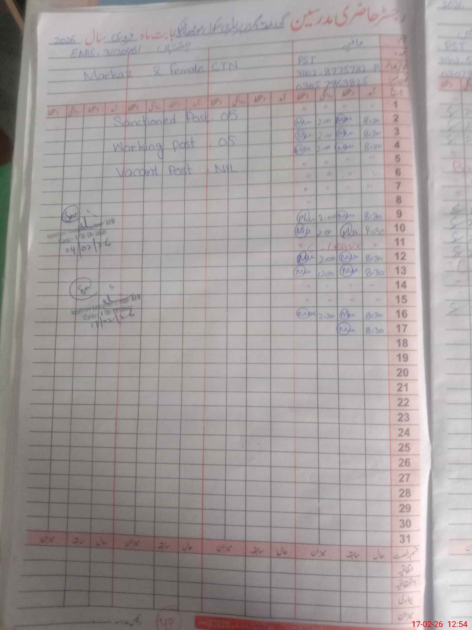 | Name: Sa**** Ra**** Designation: (School Headmaster's/Headmistress's) ESE SCI MATH Phone/Cell Number: 03**** |