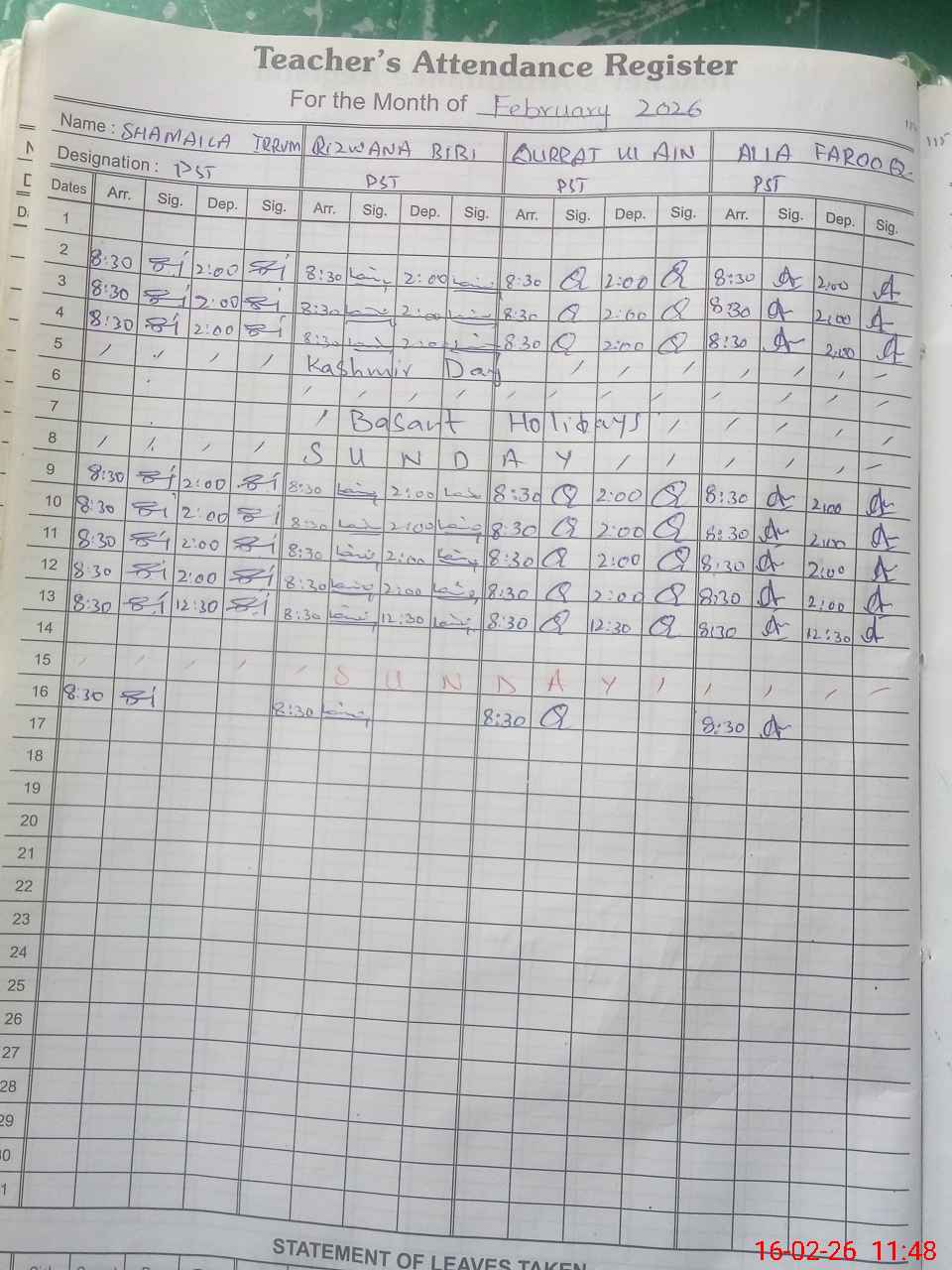 | Name: SH**** IR**** Designation: (School Headmaster's/Headmistress's) PST Phone/Cell Number: 03**** |