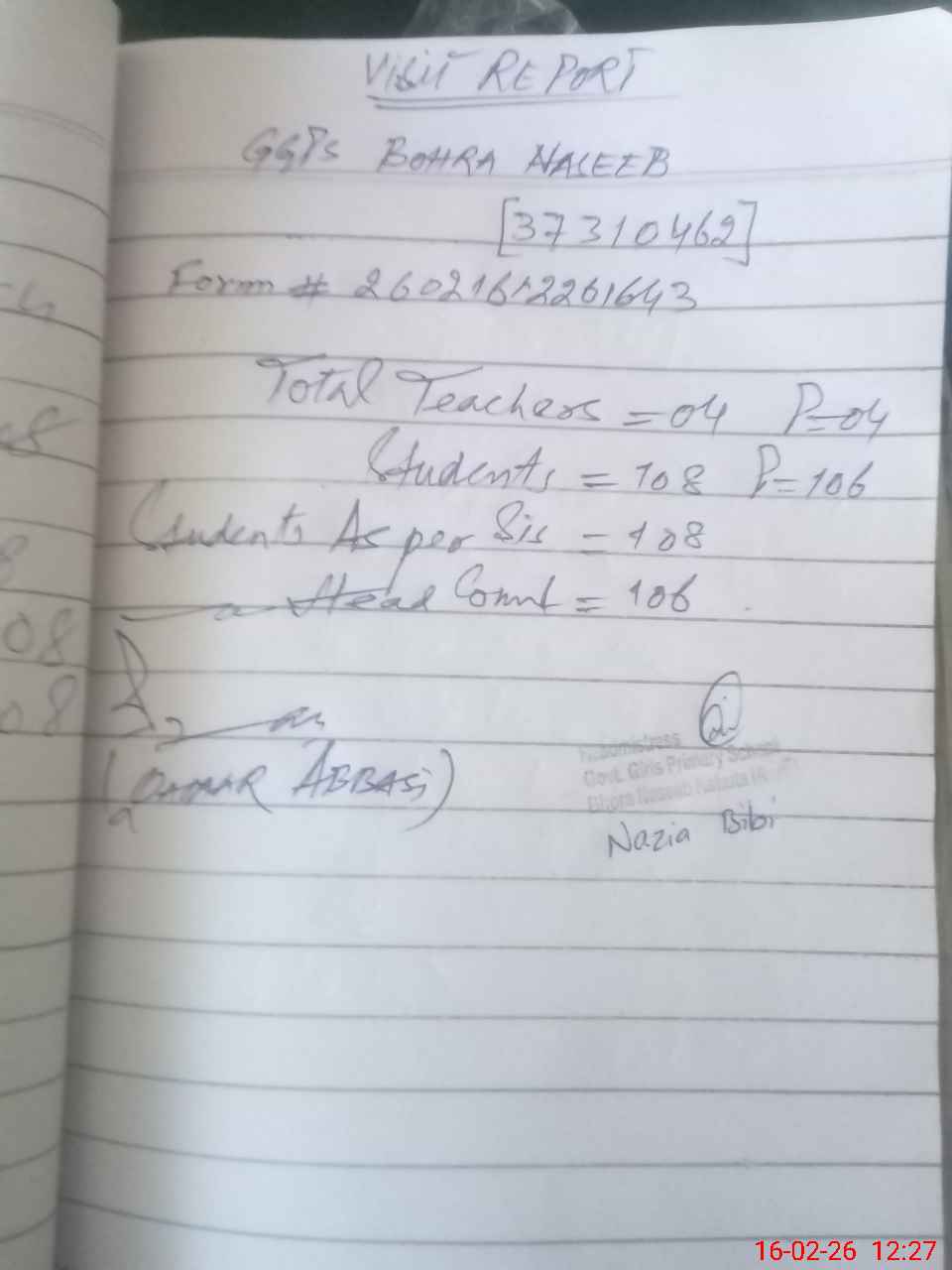| EMIS Code: 37310462 | Name of School: GGPS BHORA NASEEB | |||