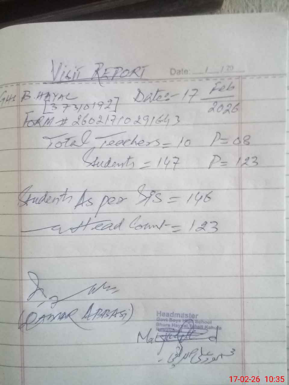 | EMIS Code: 37310192 | Name of School: GHS BOHARA HAYAL | |||