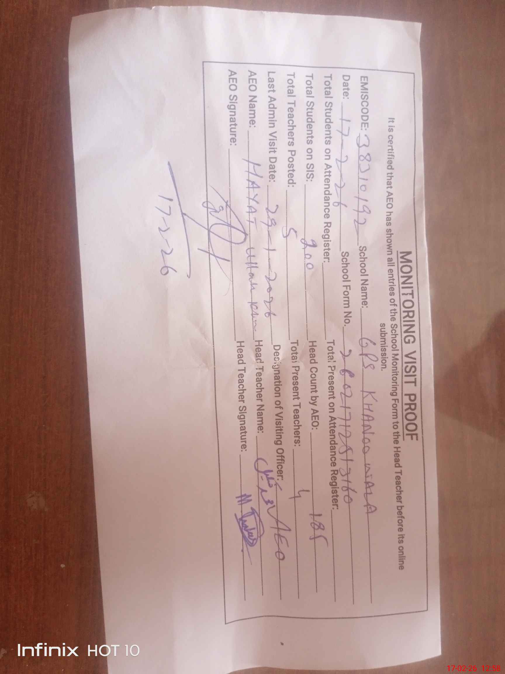 | EMIS Code: 38310192 | Name of School: GPS KHANOO WALA | |||