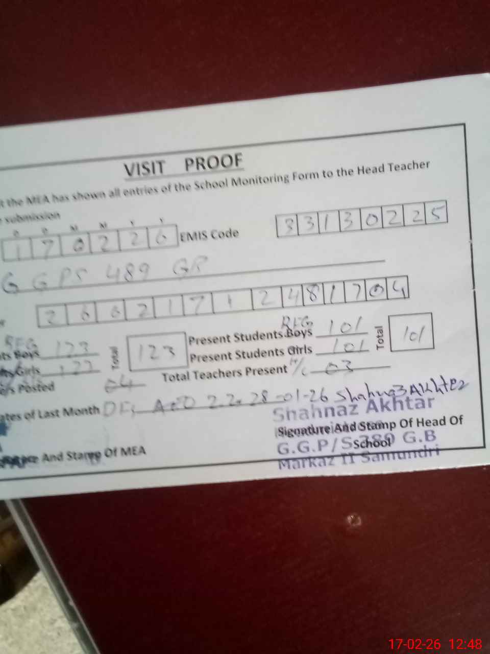 | EMIS Code: 33130225 | Name of School: GGPS CHAK 389 GB SAMUNDRI | |||