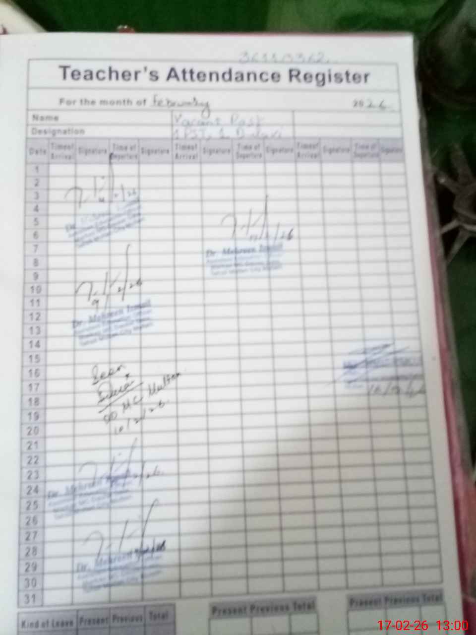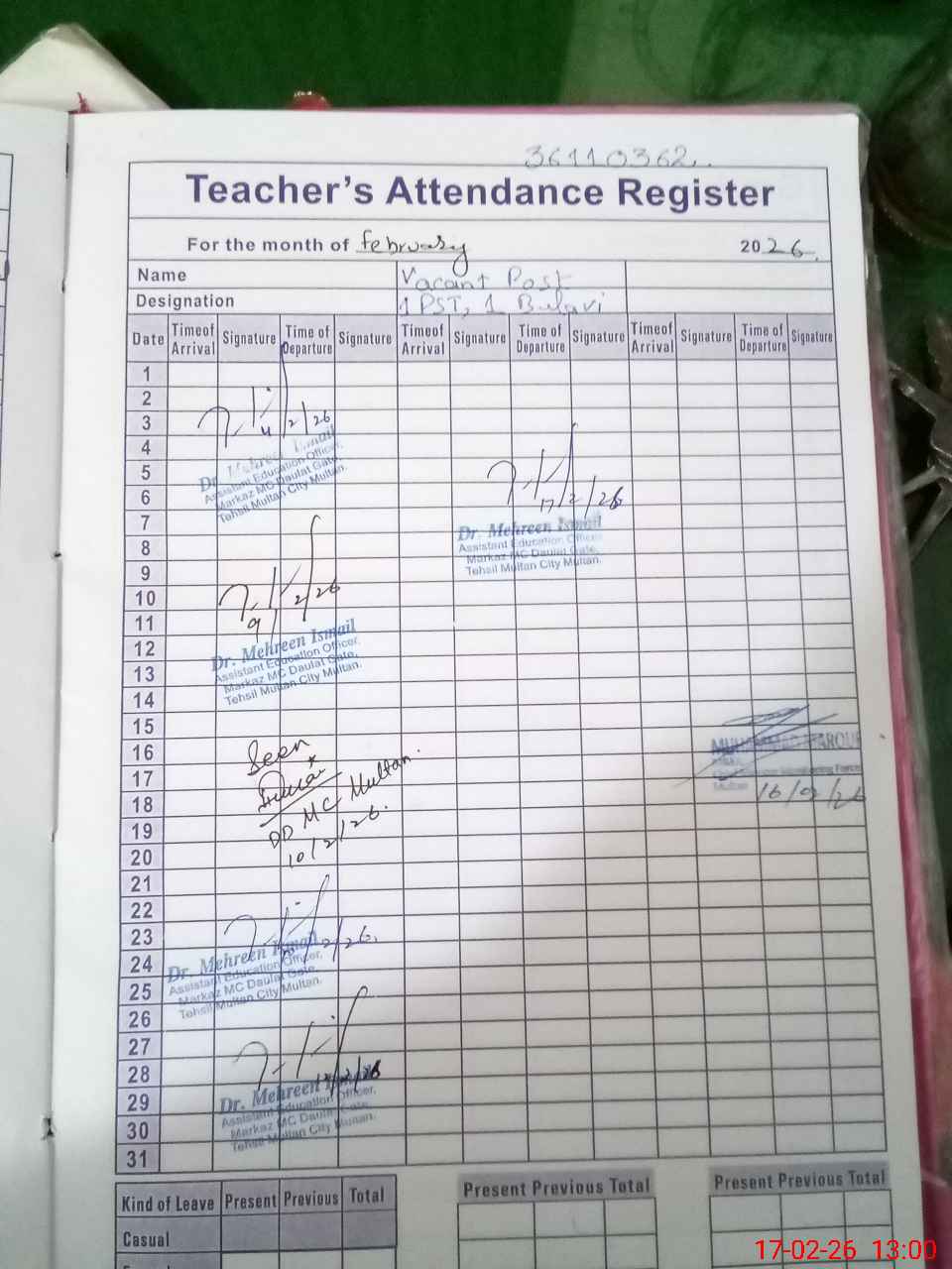 | Attendance Register | Head Teacher | MEA with School | Visit Proof |