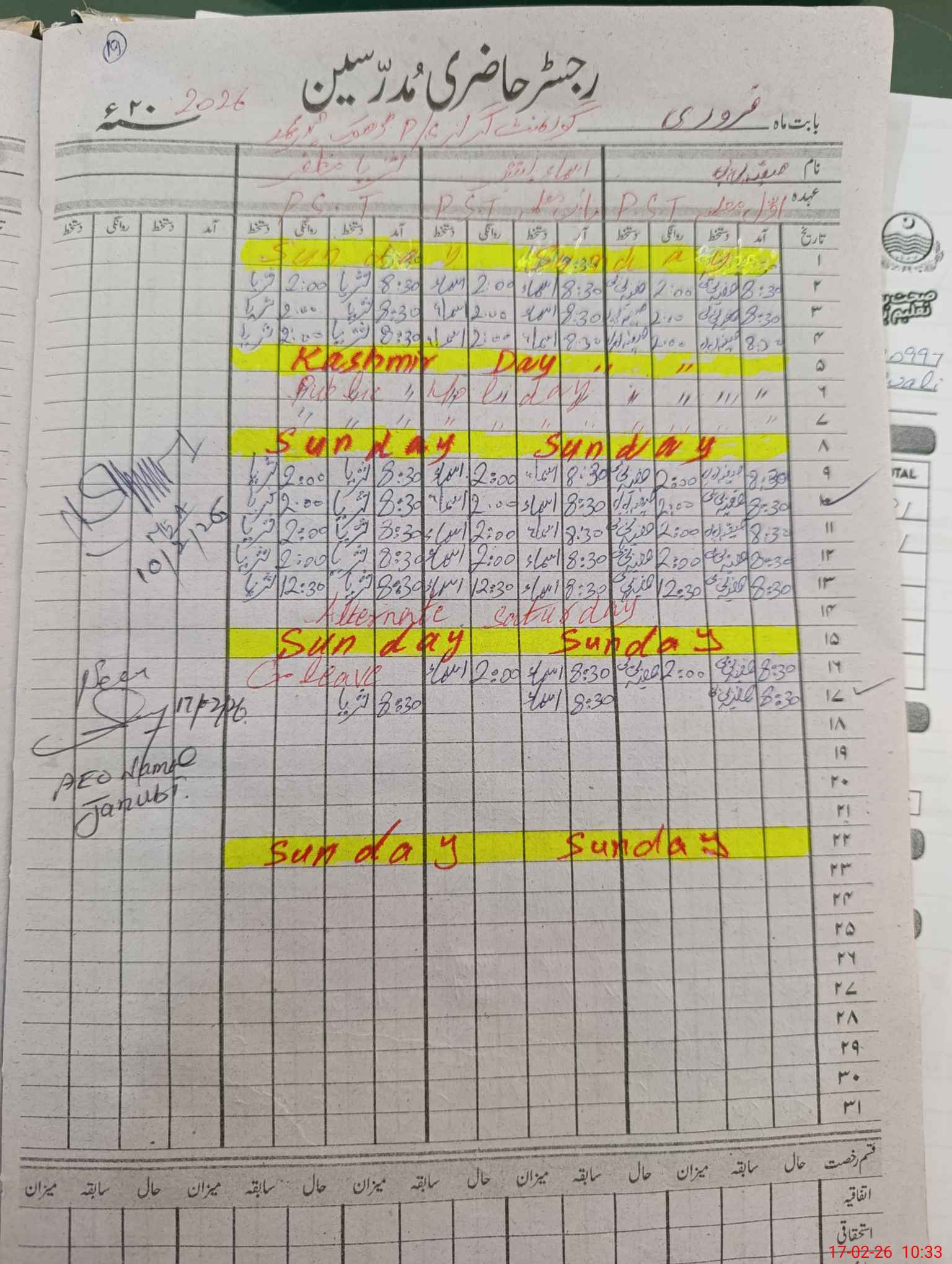 | Name: Sa**** Bi**** Designation: (School Headmaster's/Headmistress's) PST Phone/Cell Number: 03**** |