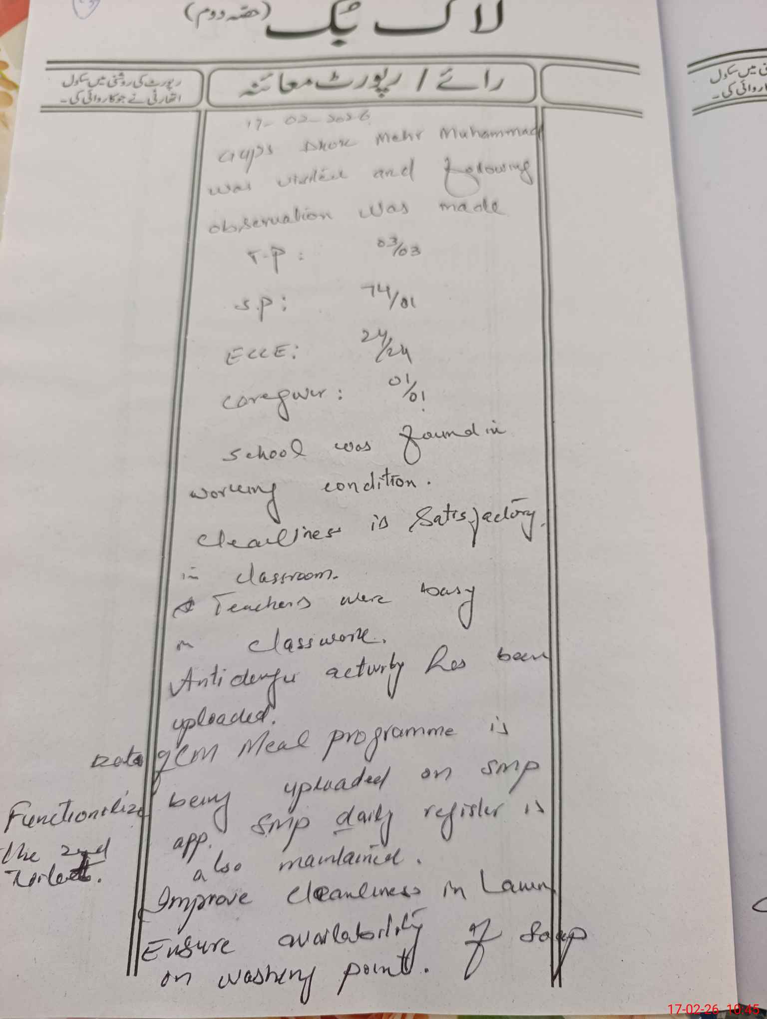 | Monitoring Date: 17-02-2026 | Start Time: 17-02-2026 10:04 AM | End Time: 17-02-2026 10:45 AM | Name of MEA: Mu**** As**** | |