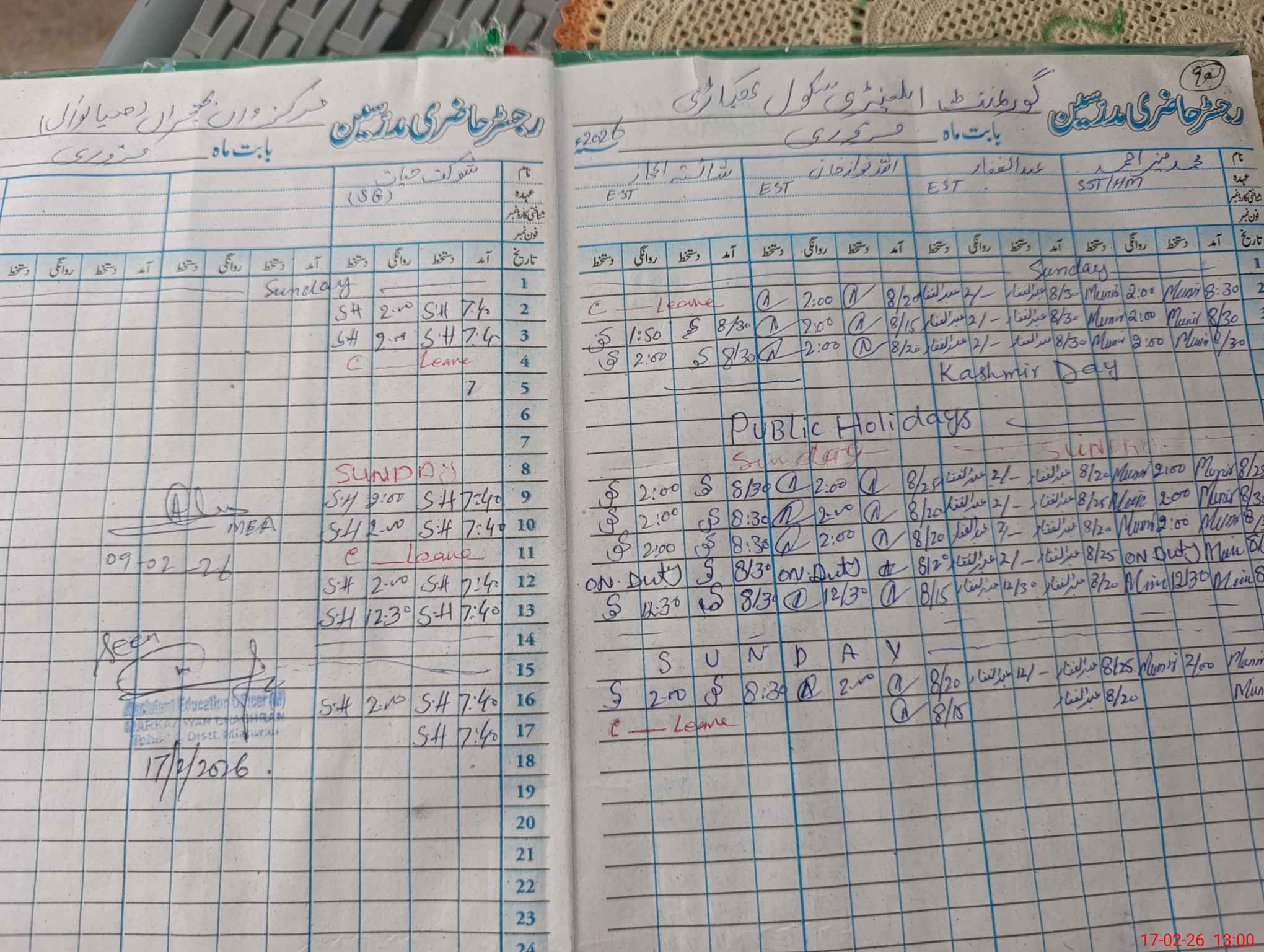 | Name: MU**** MU**** AH**** Designation: (School Headmaster's/Headmistress's) S.S.T.(GEN) Phone/Cell Number: 03**** |
