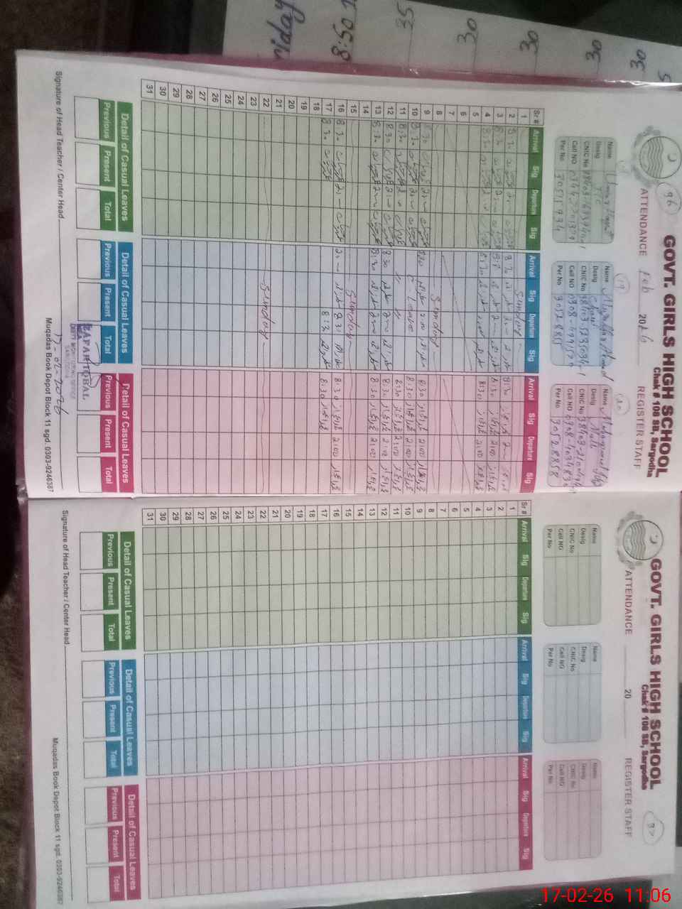 | Name: AZ**** FA**** Designation: (School Headmaster's/Headmistress's) HM Phone/Cell Number: 03**** |