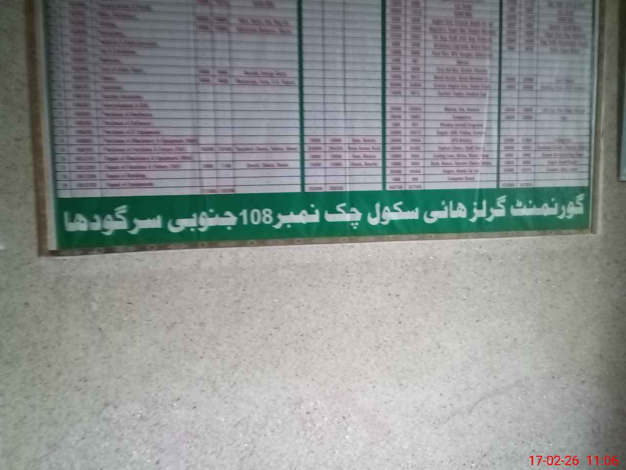 | EMIS Code: 38420156 | Name of School: GGHS CHAK NO.108 SB | |||