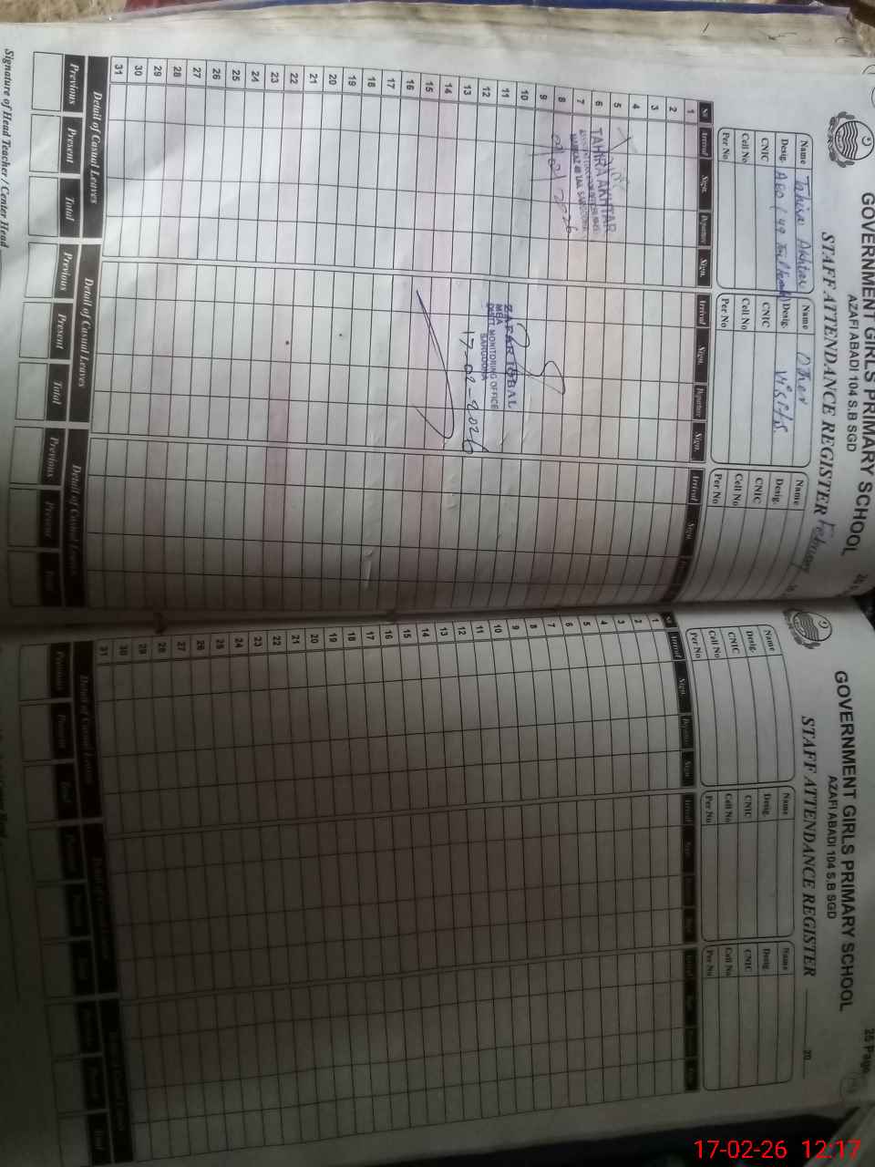 | Name: As**** Sh**** Designation: (School Headmaster's/Headmistress's) PST Phone/Cell Number: 03**** |
