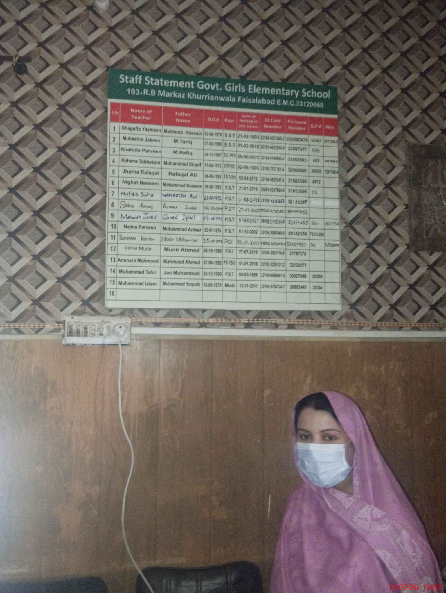 | Name: Su**** Ya**** Designation: (School Headmaster's/Headmistress's) S.S.T.(Science) Phone/Cell Number: 03**** |